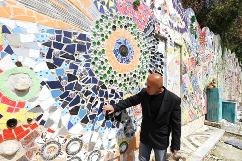 2. Largest mural from recycled material Crafted out of recycled material, the colorful mural measures 720 m² (7,749.98 ft²). Created by Moaffak Makhoul in Al Mazzeh, Damascus, Syria, on January 27, the artwork is made of scrap from cars, bicycles wheels, cooking utensils, pipes and soft drink cans, mirrors and ceramics.