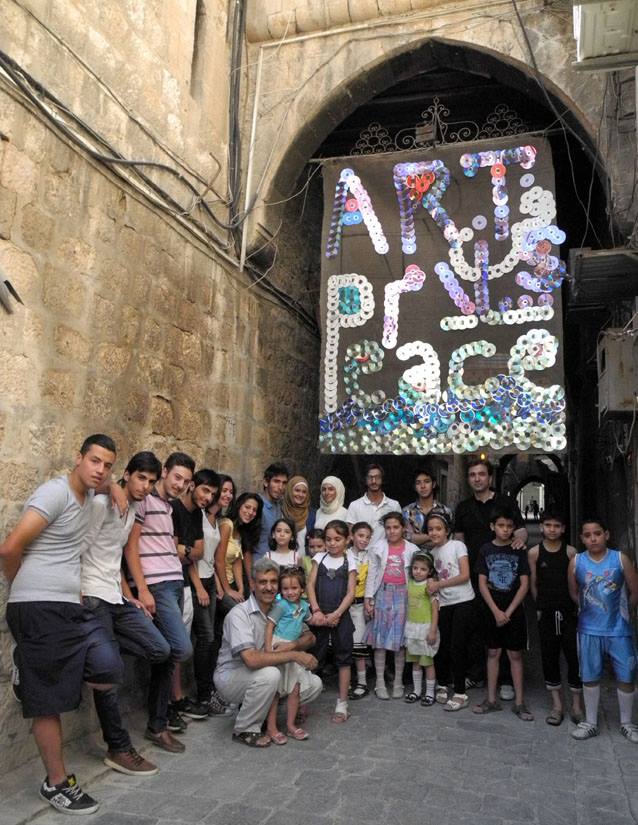 They hung it in Aleppo’s old city, where many displaced Syrians are now living. Other Art Camping projects include “Textures of the city we lost” and the “Smile campaign” , in which they painted rooftop satellites as big yellow smiley faces.