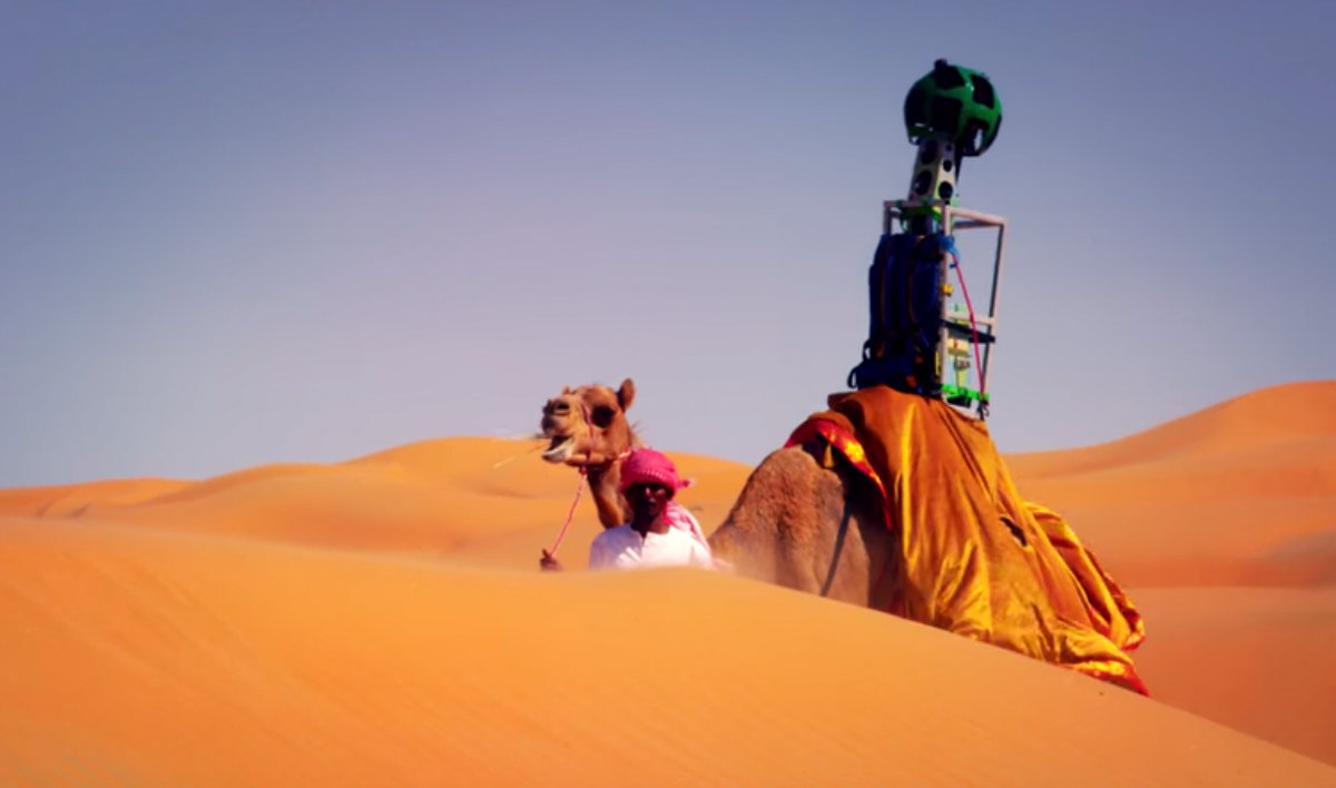 UAE , Cross-border Heritage Lifestyle Science & Technology The More You Know 19 Smiles Photo Credit: Youtube Google by Valentina Primo 1 week ago After opening the Egyptian pyramids for virtual visits through Street View , Google now allows armchair tourists to virtually explore the depths of the Arabian Desert , filmed to the graceful pace of a camel. “Raffia” the camel is the first animal to carry Google’s Trekker camera, usually taken by humans to capture 360-degree images where Street View cars cannot reach. The 10-year-old camel captures images of Abu Dhabi’s Liwa Oasis, a 100 km wide yellow paradise in the UAE that boasts some of the world’s biggest sand dunes.