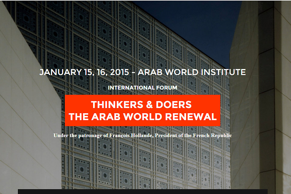 354 Smiles Top leaders, decision-makers and emerging personalities working on the Arab region met last January 15 at the launch of the international forum on Thinkers and Doers of the Arab World , which concludes today at the Arab World Institute , in Paris. Inaugurated with a speech by French president Francois Hollande, the two-day conference aims to offer a hopeful vision of the Arab world in a critical moment when discourses on the region are stained by the atrocities committed by extremist organizations. Entitled “The Renewal of the Arab World”, the forum will focus on entrepreneurship, renewable energy, women’s empowerment and the emergence of creativity in the art market, areas which are thriving with changemakers leading a cultural and social reinvention of the region.