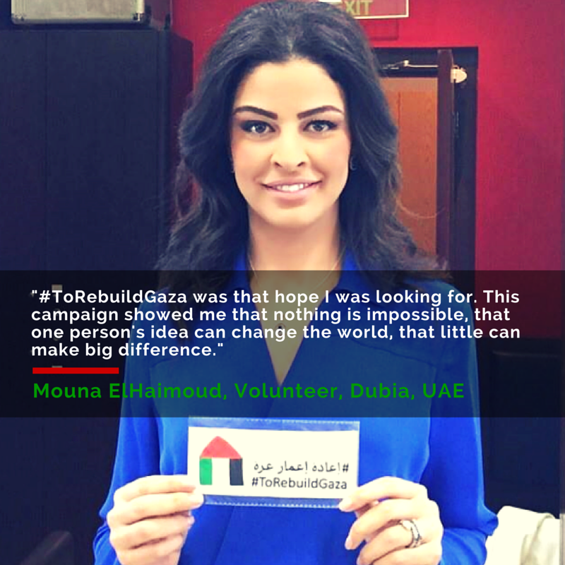 5.5K Smiles “I want the world to know about Huda Al Masri-Sosebee (God bless her soul), a Palestinian refugee who had so much love that she inspired her American husband to start a foundation to save thousands of children. It is an honor to tell their story and have the world work together to save her children in Gaza and all over the world.” Dina Saoudi Othman shares her vision on how she launched #ToRebuildGaza with her two sisters in July 2014. A concept that began with the faith grounded in the sisters love for humanity and healing the world.