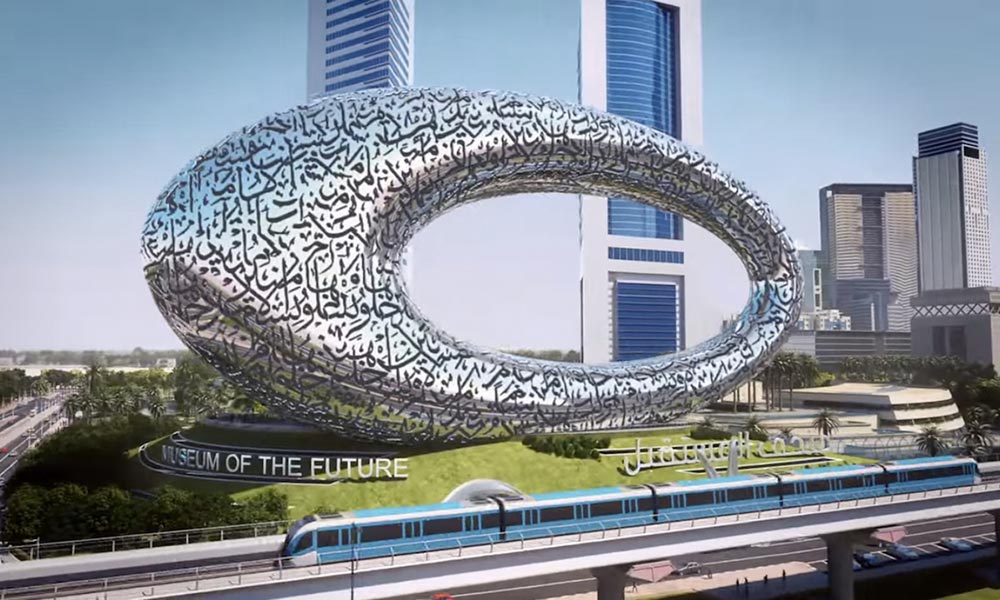 .Like many of Dubai’s buildings, the Museum is exquisitely designed with a curved steel exterior oval-like shaped with an interior hollow .And according to a report from The Wall Street Journal , the exterior actually incorporates verses from HH Sheikh Mohammed Al-Maktoom’s poetry .What’s more is that major sections of the $136 million building will be built using 3D printing construction technique