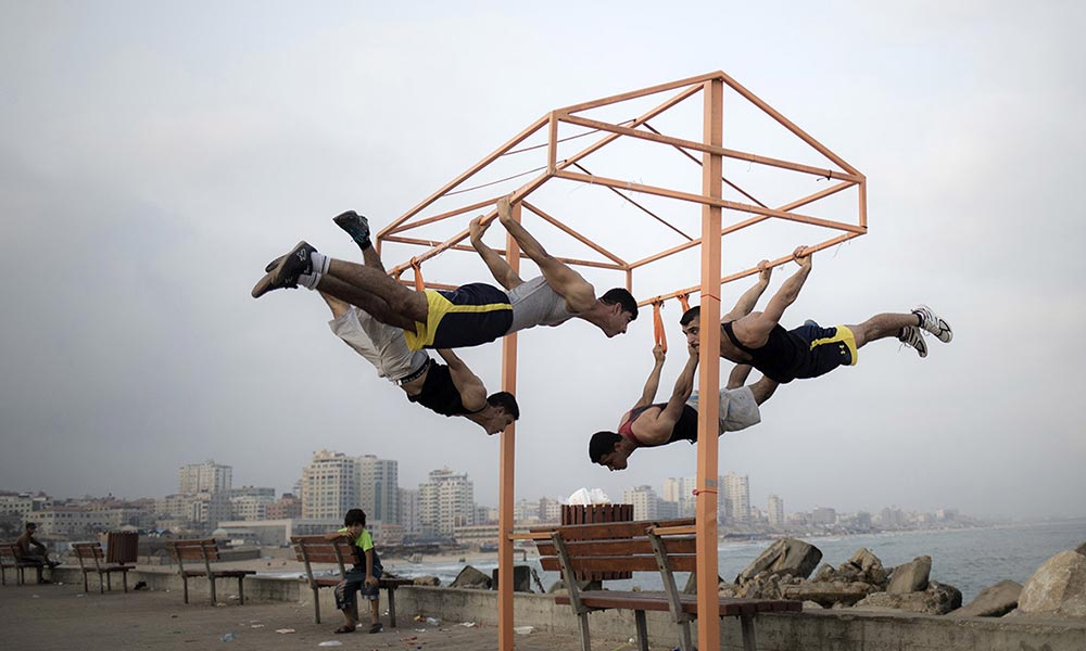 Images of this group of ever-increasing men are pervading the internet. They hang off the sides of destructed walls and, strangely, off of each other’s bodies! Gaza’s cities have become their own personal gym.