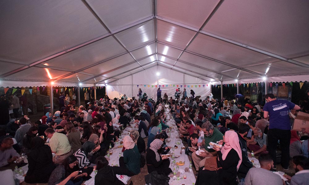 Most of the stuff was [from] the supermarkets. Around 10 to 15 of us would go and buy pizzas, crisps, tea, coffee, water, and dates – you know, the simple stuff.” Now, his idea has expanded into magical tents filled with fun, food, and laughter. The Ramadan Tent spreads across a garden square in the middle of London, where hundreds of Muslims and non-Muslims alike gather to enjoy the sunset meal.